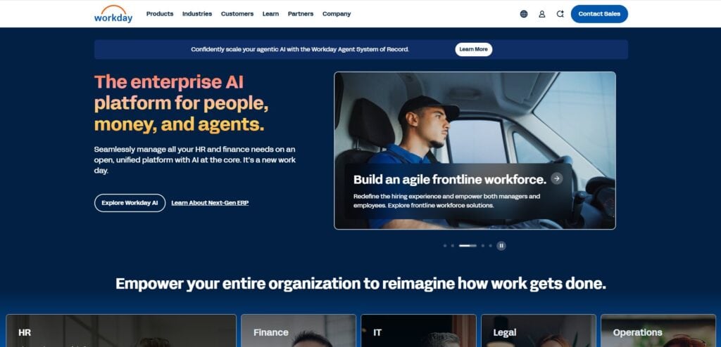 | Workday | Enterprise HR + finance | HCM + financial planning | Cloud | Contact for quote | 3-12 months | 4.2/5 |